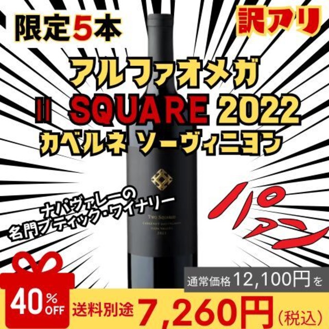 ※※※こちらの商品は、デザイン変更、エチケット(ラベル)破れや汚れ、二重貼りやラベル無し、キャップシール無しなど、外装に損傷ありの商品をアウトレットとして販売しております。そのため、上記の理由とする返品につきましてはご対応いたしかねます。予めアウトレット品であることを十分ご了承いただいた上でご注文をお願申し上げます。※※※ ■商品について■ 原産国:アメリカ合衆国 ワイナリー:アルファ・オメガ・ワイナリー ・アルファ オメガ ツー スクエア 2022(赤)750ml ※ワインの詳細は画像をご確認ください。 ■商品のお届けについて■ ・アウトレット商品の発送は、毎週火曜日、金曜日の2回のみとなります。 ▶月曜日午前中までのご注文→火曜日発送 ▶木曜日午前中までのご注文→金曜日発送 ・お届け日のご指定は承れませんのでご注意ください。 ・クール便をご指定の場合は、クール便(別途440円)を選択したのち、カートにお入れください。 ※冷暗所での保管をお勧めします。 ※セットを複数ご注文の場合、セットごとの梱包ではない場合がございます。 ※アウトレット品のため、配送用の箱に記載の銘柄と内容は必ずしも一致いたしません。 ※数に限りがございます。売り切れの際はご容赦ください。 ※こちらの商品は送料別途頂戴いたします。