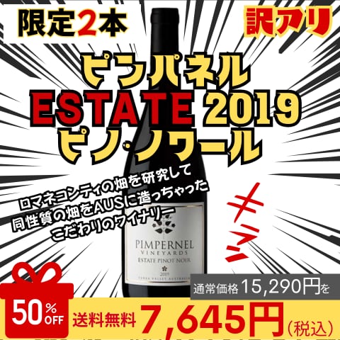 <アウトレットSALE>【 限定2本】50%OFF ピンパネル ヴィンヤーズ エステート 2019 送料無料