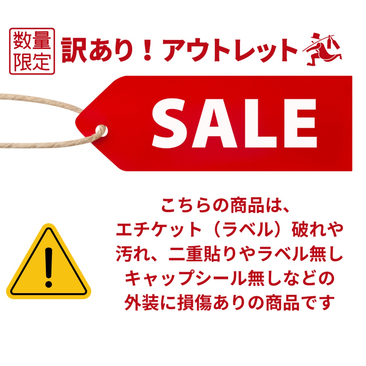 ※※※こちらの商品は、デザイン変更、エチケット(ラベル)破れや汚れ、二重貼りやラベル無し、キャップシール無しなど、外装に損傷ありの商品をアウトレットとして販売しております。そのため、上記の理由とする返品につきましてはご対応いたしかねます。予めアウトレット品であることを十分ご了承いただいた上でご注文をお願申し上げます。※※※